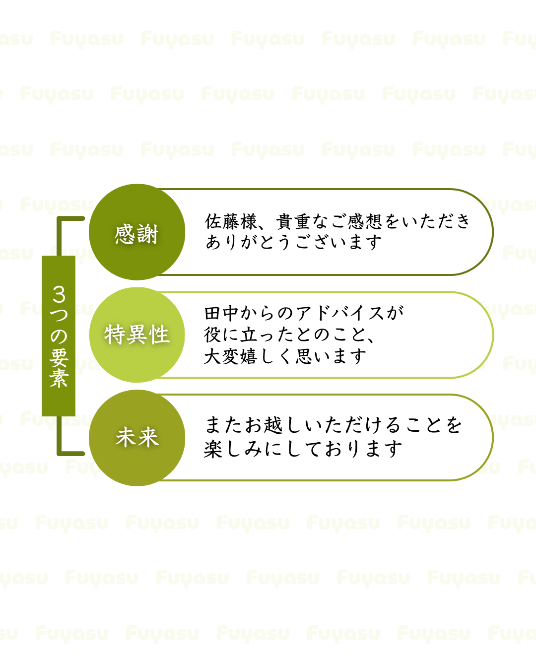いつもの感謝の言葉に「ひと言」、お客様のクチコミ内容に触れる言葉を加えるのがおすすめです。